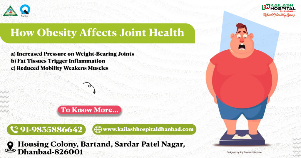 At Kailash Hospital, Dhanbad, expert orthopaedic support is led by Dr. Ashish Bajaj, Consultant Orthopaedic, who has extensive experience in treating joint disorders caused by obesity, arthritis, and lifestyle factors. In this comprehensive guide, we will explore how obesity damages joints, its causes, symptoms, treatments, preventive measures, and why early intervention with specialists can significantly improve quality of life.